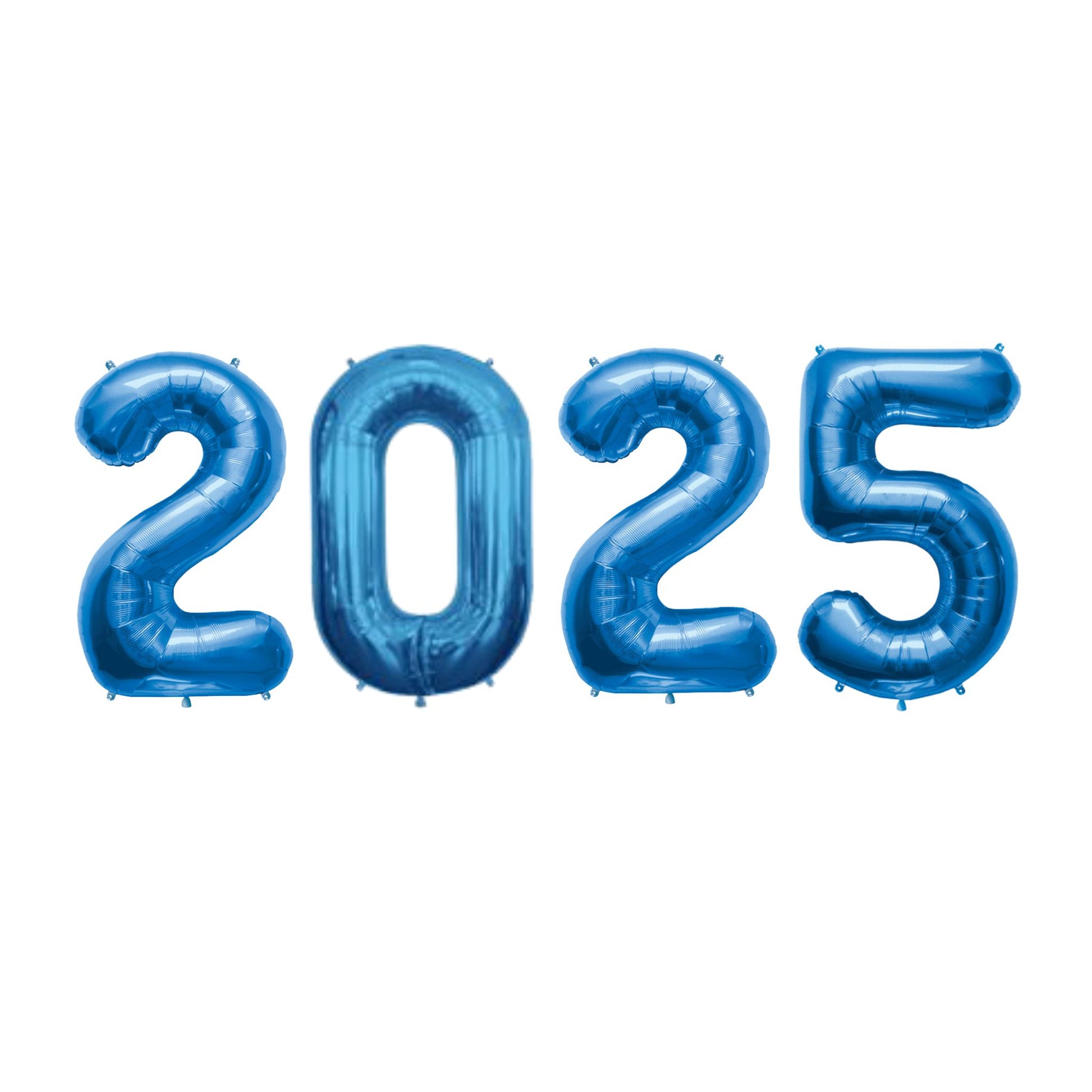 2025 Large Number Blue Foil Balloons 34" tied with color complementary string and filled with 99% Helium. Perfect for a 2025 Graduation. Tabs available to string together anywhere and can be filled with and without helium.