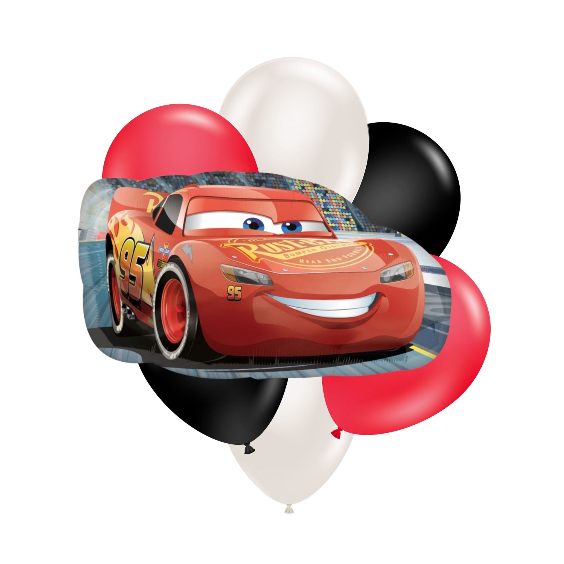 Super Shape Lightening McQueen Balloon 30" tied with color complementary string and filled with 99% Helium.